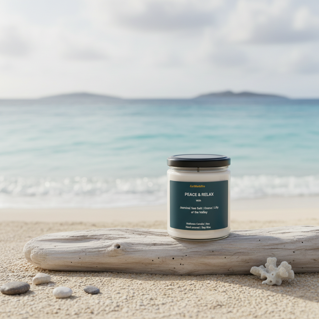 PEACE & RELAX | Jasmine Candle Scent | Jasmine, Sea Salt, Ozone & Lily -9oz