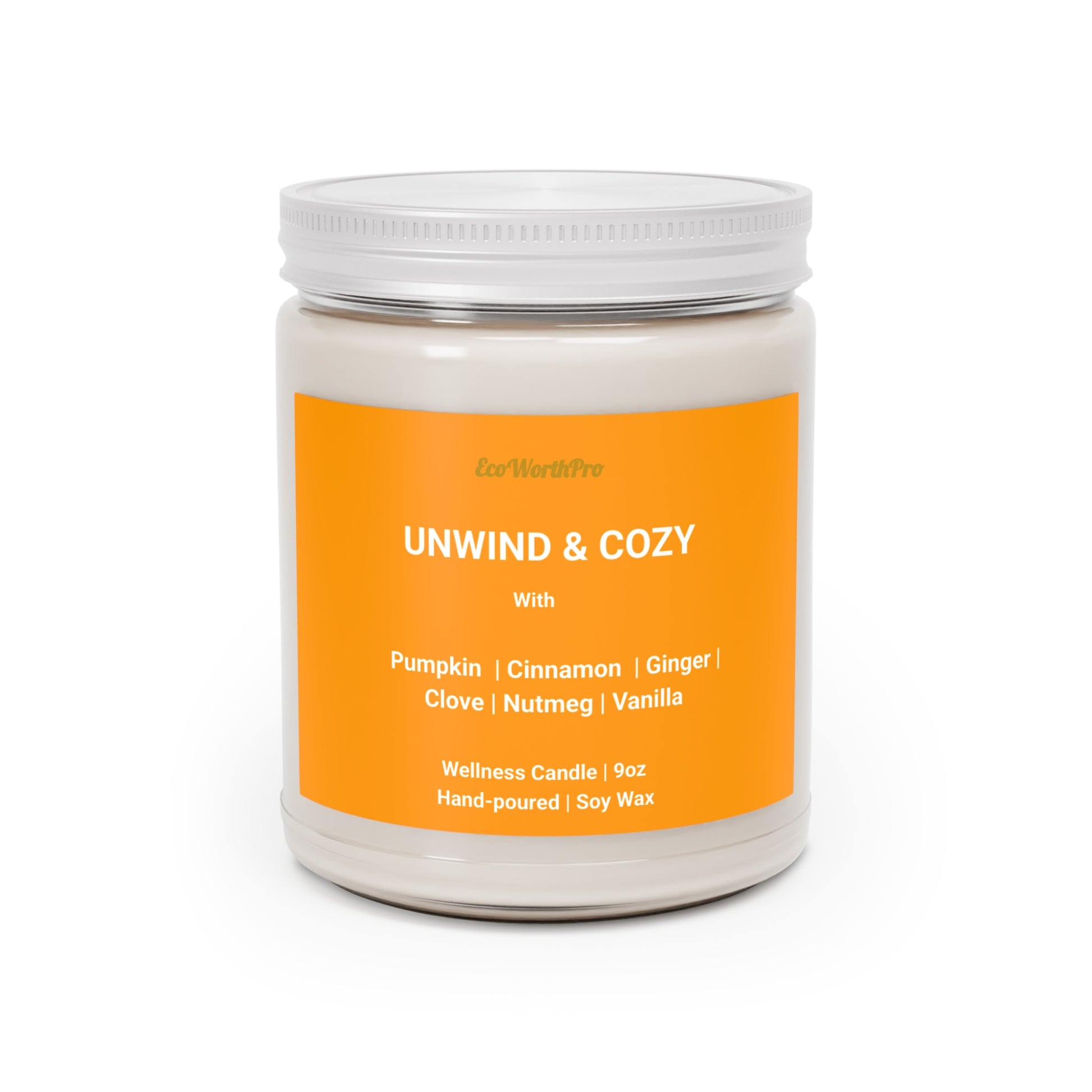 UNWIND & COZY | Pumpkin Spice Wellness Candle –Pumpkin, Ginger & Cinnamon - 9oz